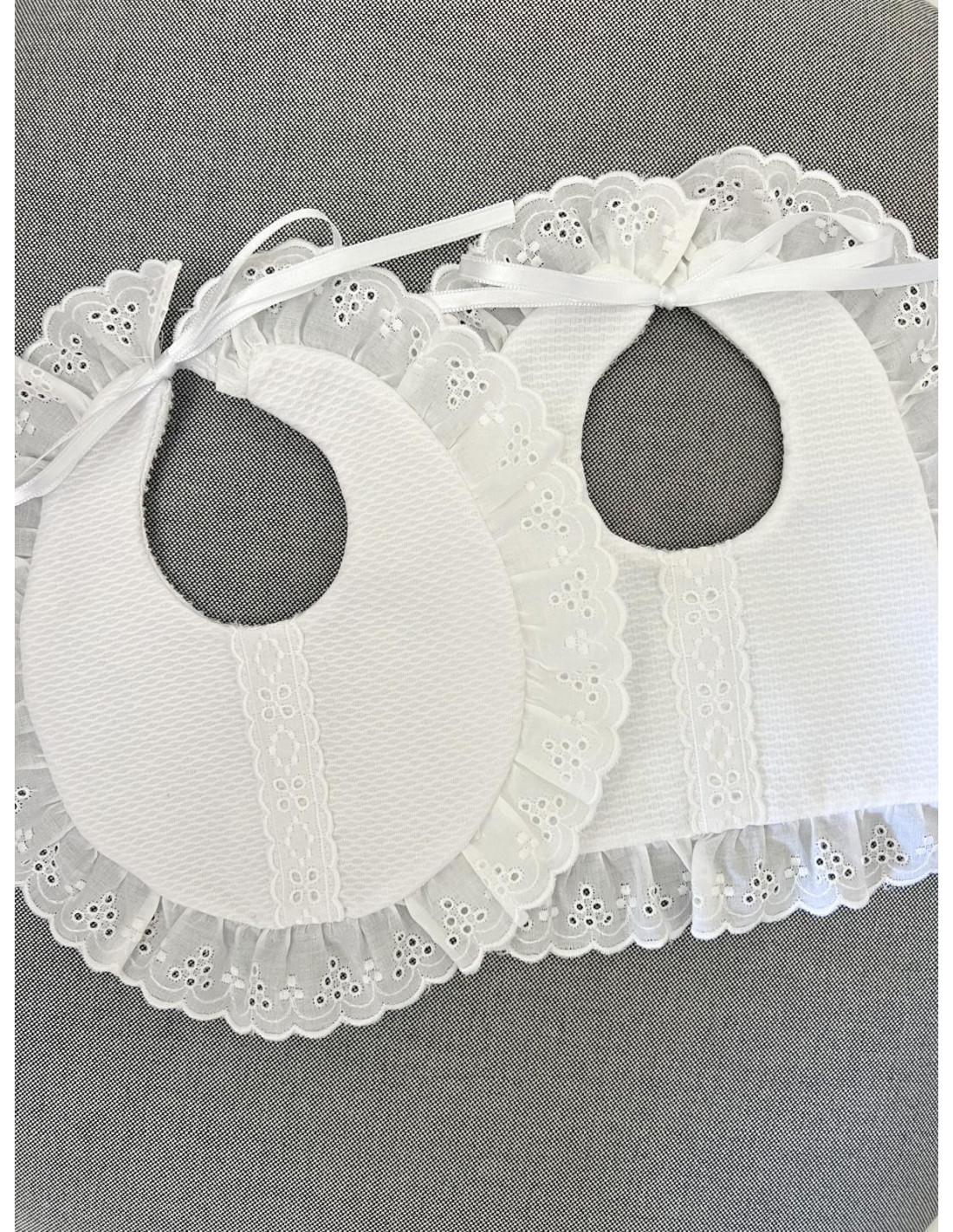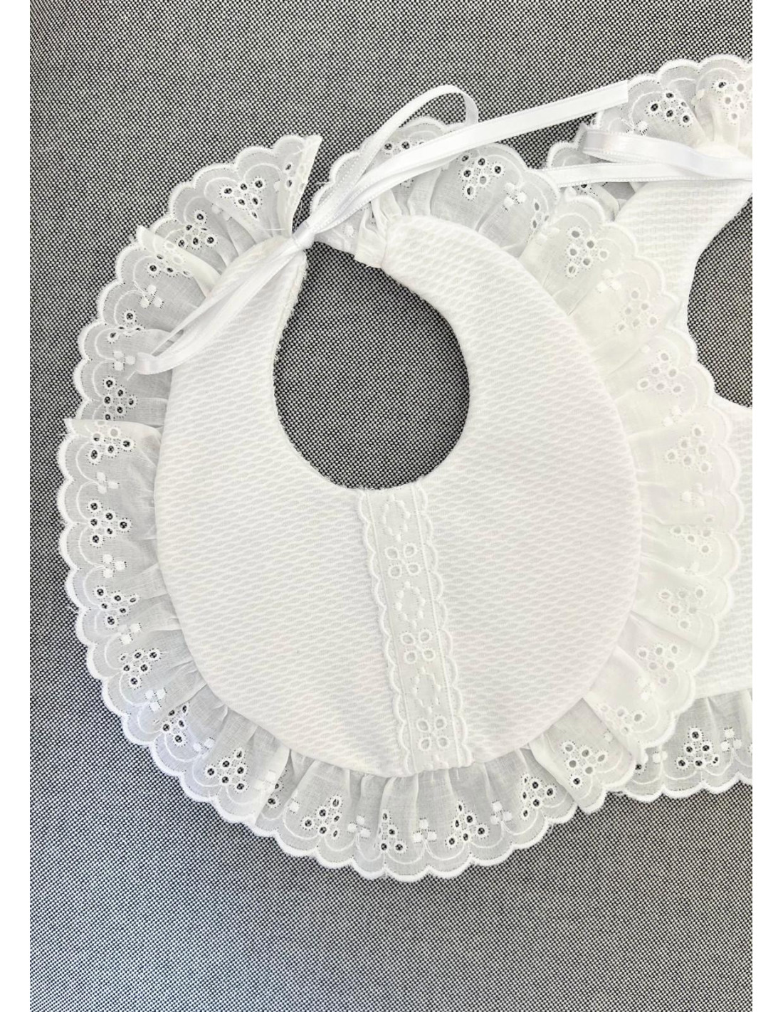 Babero especial con entredós, haciéndolo original y diferente a los demás.