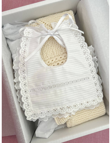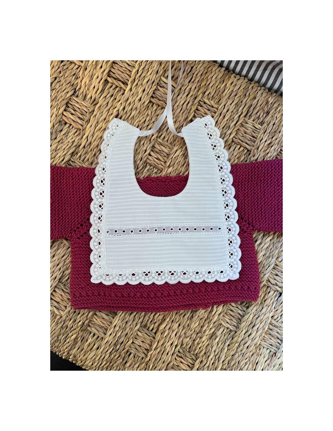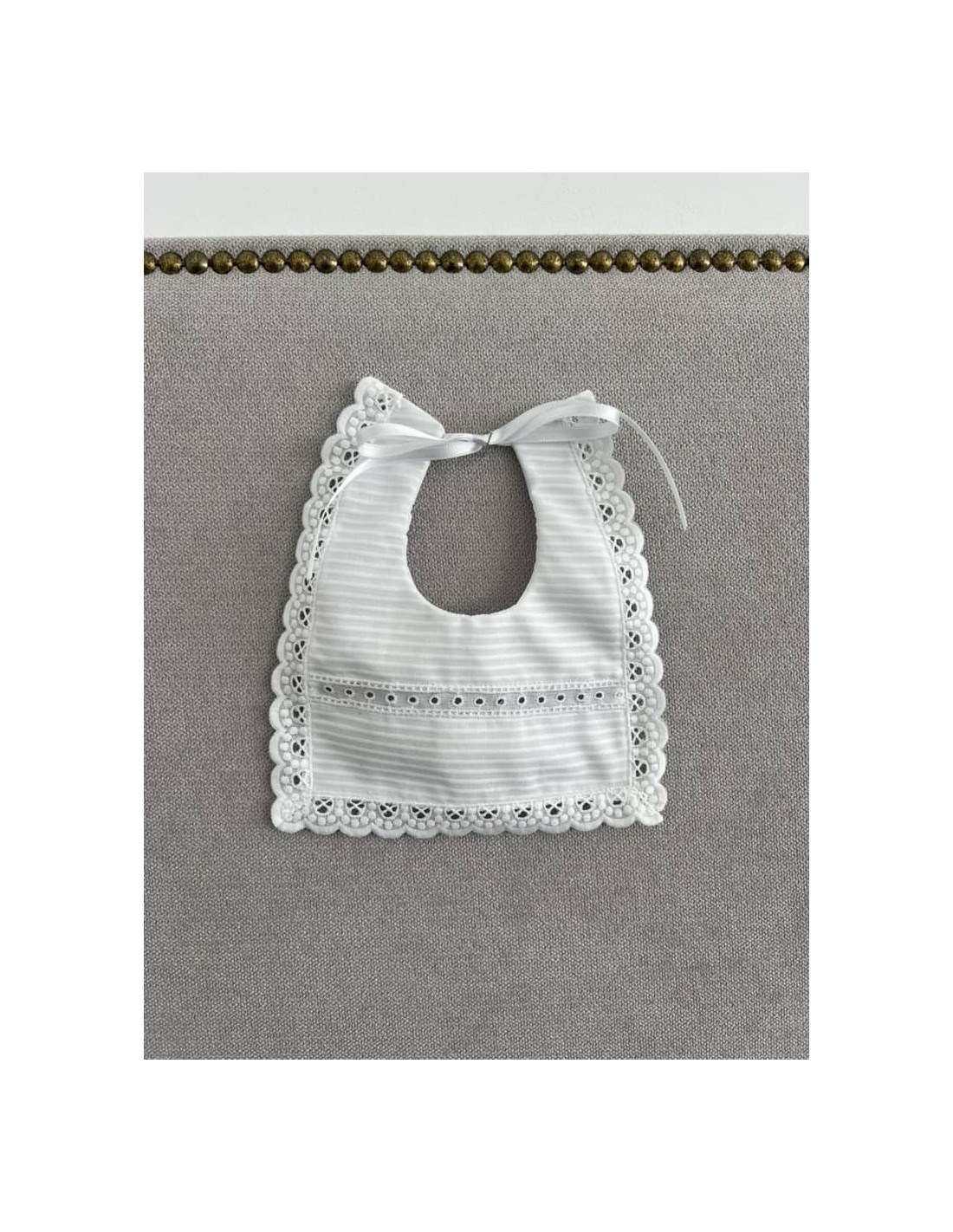 Babero especial con entredós y tira bordada, haciéndolo original y diferente a los demás.