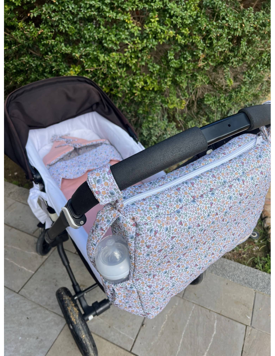 La bolsa de carro de Menta y Coco tiene el tamaño perfecto para llevar todo lo necesario para los paseos con el bebé.