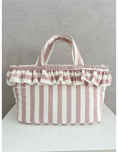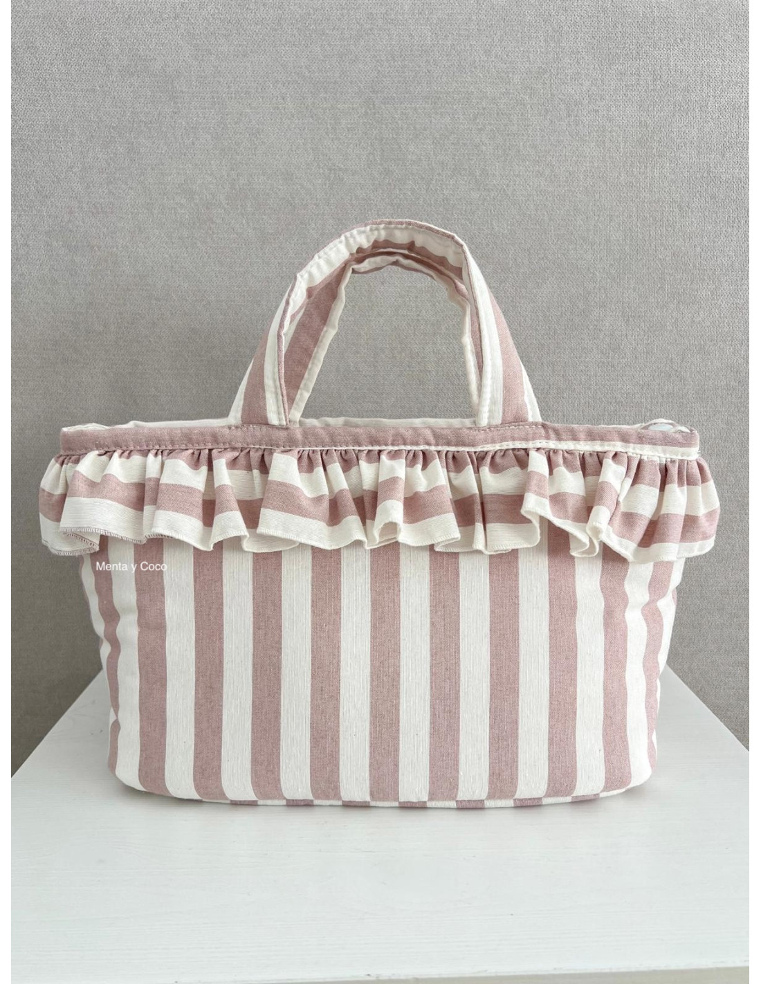 Cuidados: lavar a máquina con agua fría, no usar secadora y planchar a baja temperatura. Para una mejor conservación del tejido evitar la exposición prolongada al sol y para la zona de las asas se pueden usar ganchitos para colgarla y evitar el roce con las manos.