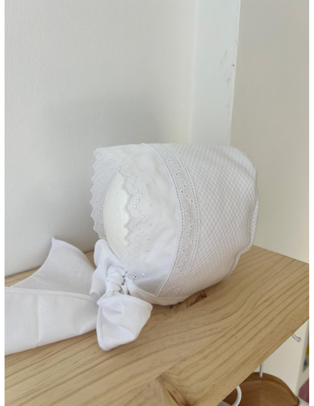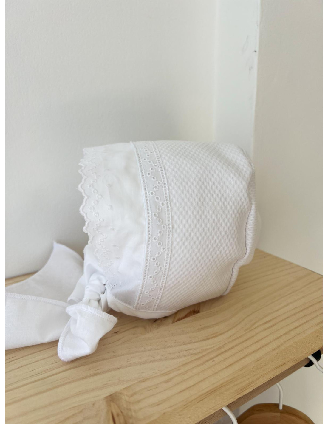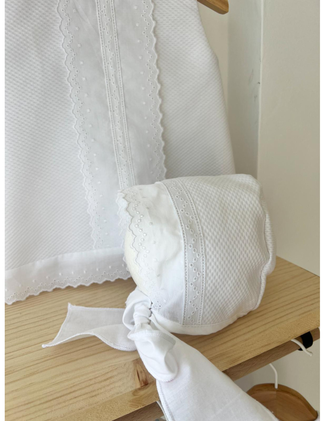 Capota entredós y tira bordada