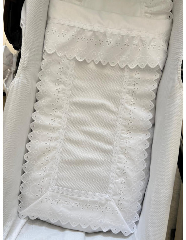 Nuestra colcha de piqué con tira bordada ondas es la opción ideal para que el carrito o moisés vaya siempre elegante y bien vestido. Su diseño, permite adaptarla a cualquier estilo de sábanas o complementos.