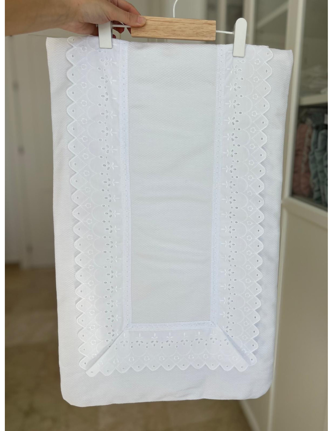Colcha piqué tira bordada picos relleno extraíble