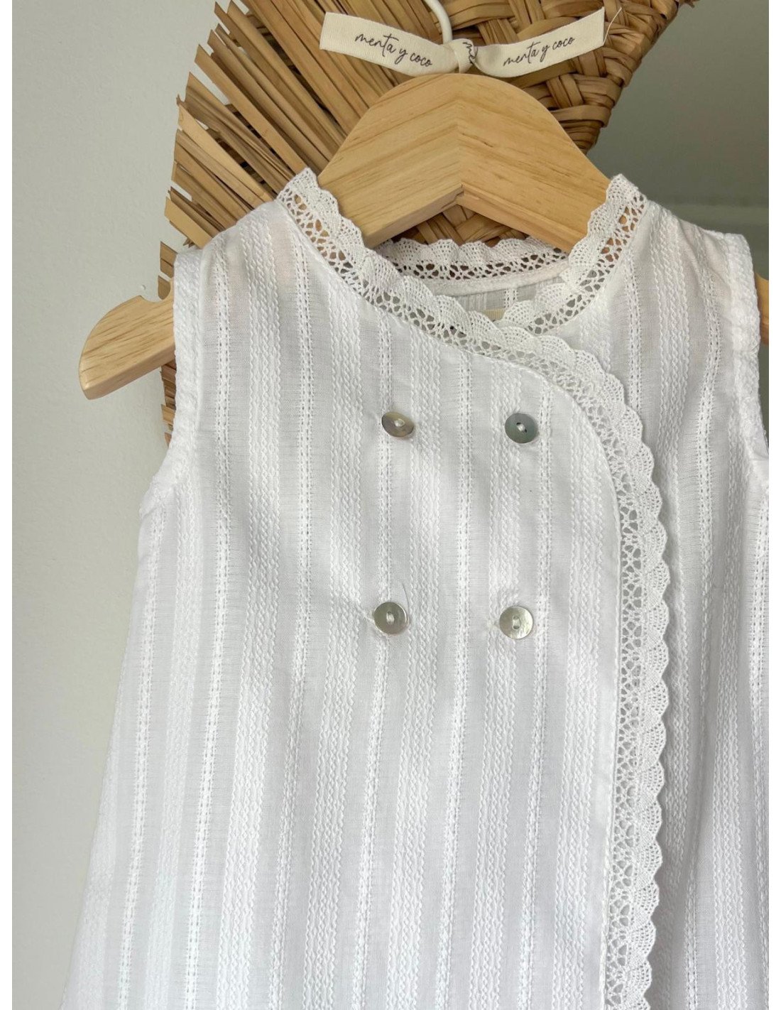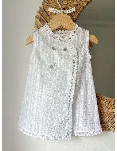 Delicado faldón con un tejido bordado rematado con una original puntilla.