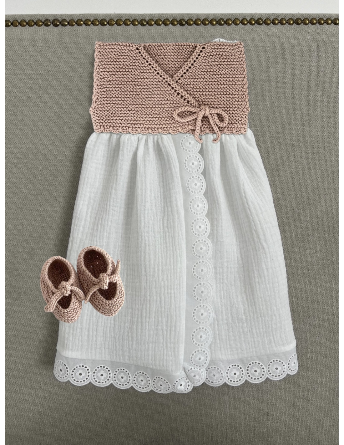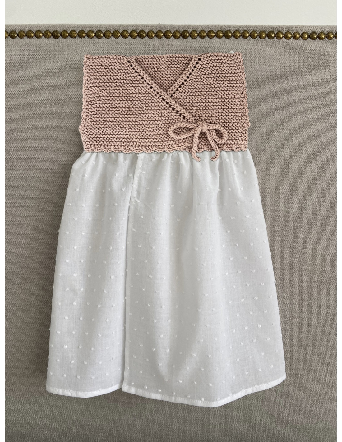 Faldón MER en algodón rosa polvo, talla 1-3m. Se puede comprar a parte la capota para completar el conjunto, , al igual que el cubrepañal de tela (no incluido en el precio).