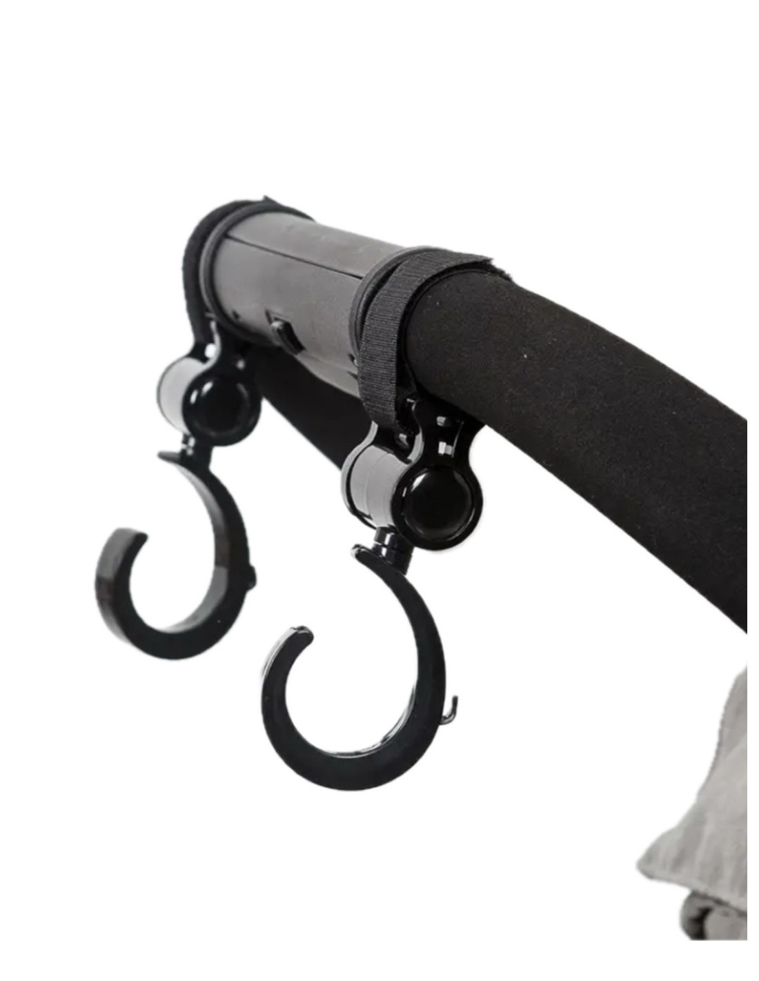Incluye 2 ganchos giratorios en color negro, se ajustan fácilmente al manillar mediante velcro.