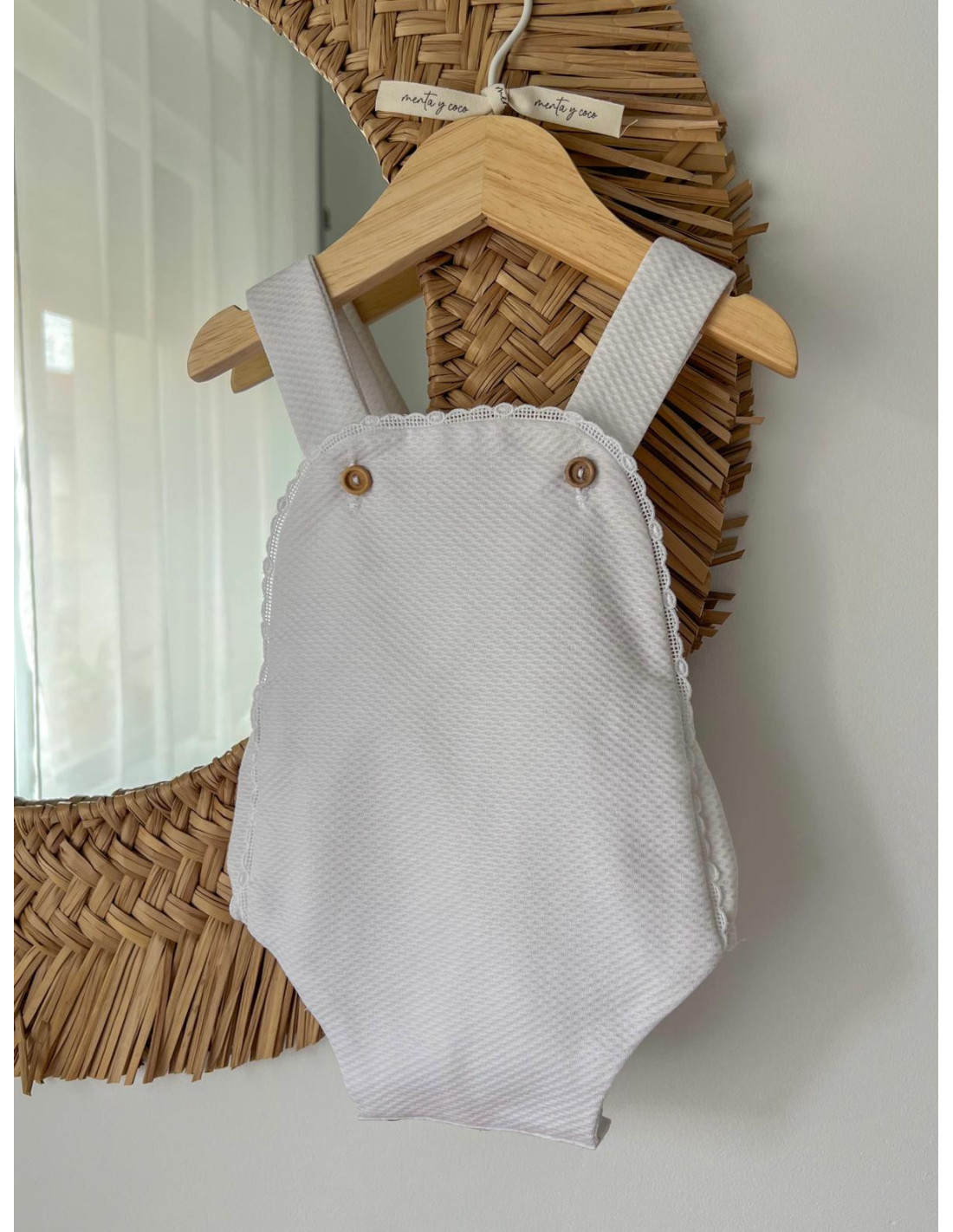 Ranita confeccionada en piqué, destaca por su tira bordada alrededor del contorno haciéndola más especial.