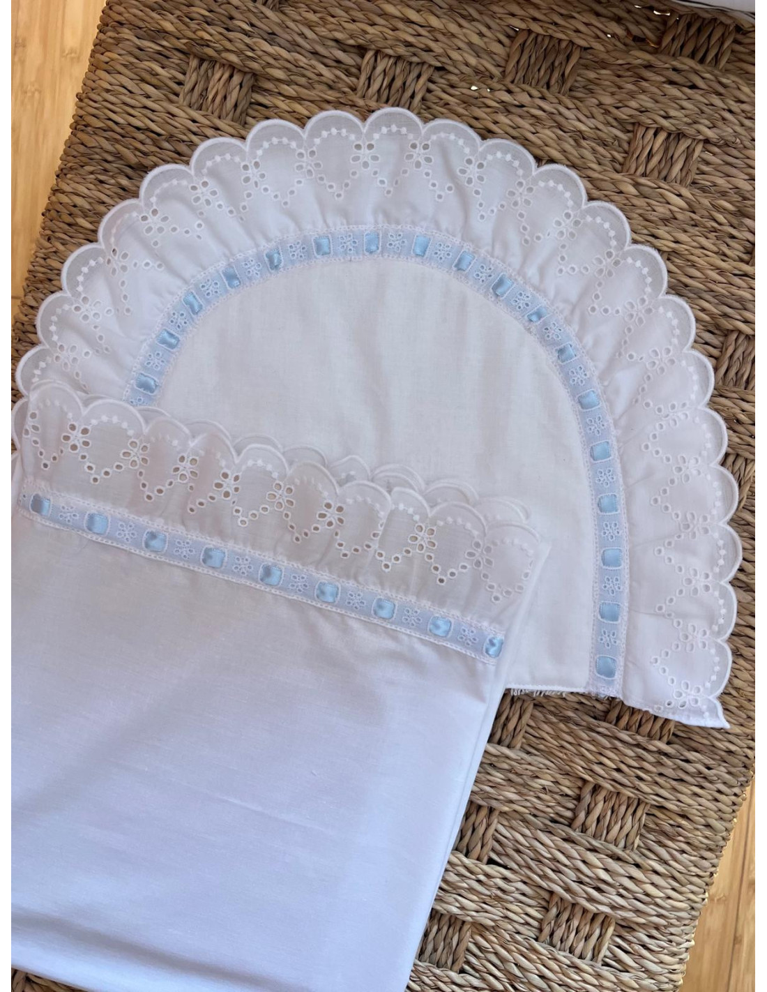 La delicada tira bordada aporta ese toque especial que viste el capazo o la minicuna con elegancia.
