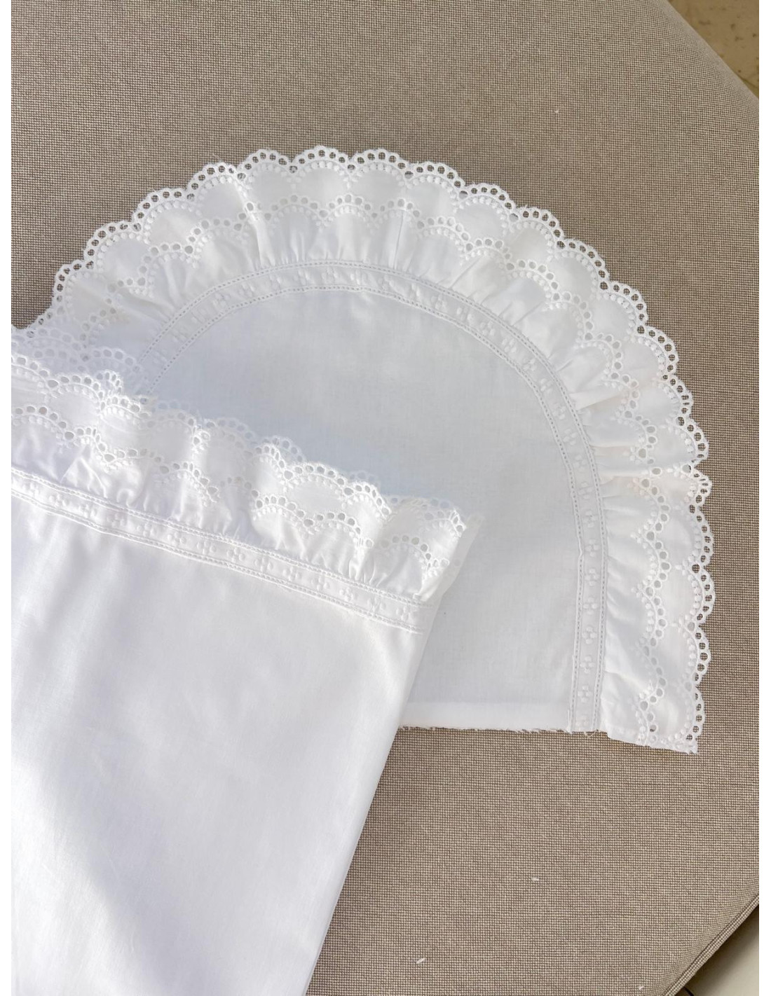 La delicada tira bordada aporta ese toque especial que viste el capazo o la minicuna con elegancia.
