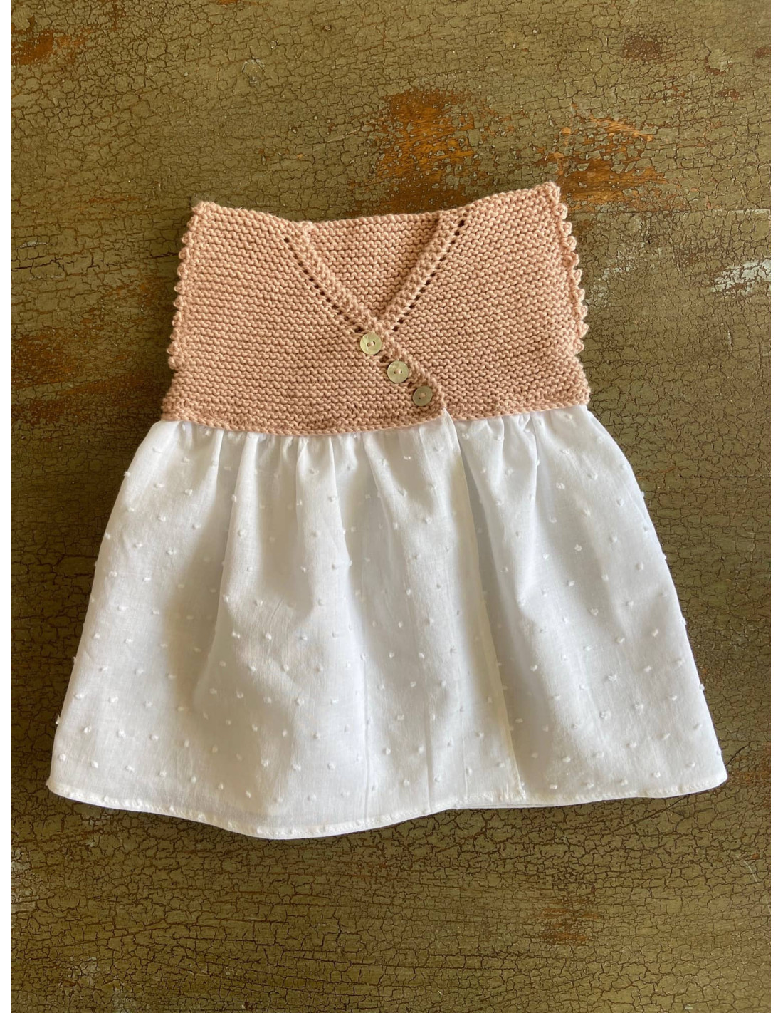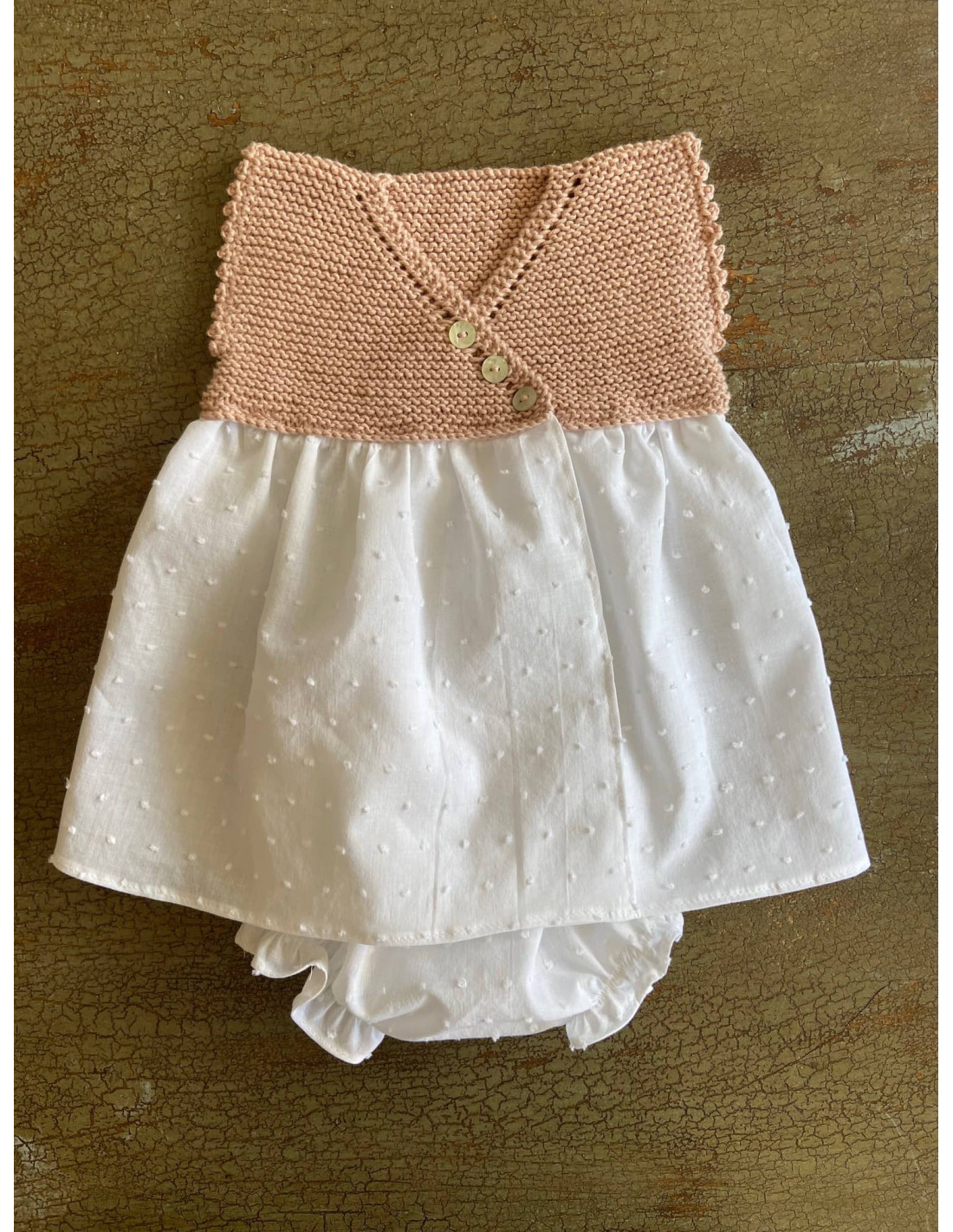 MER, uno de los modelos icónicos y más pedidos cada temporada. Para hacerlo diferente tiene otro detalle en la manga y 3 botones de nácar. Puedes comprar también el cubrepañal, capota y los patucos a juego.